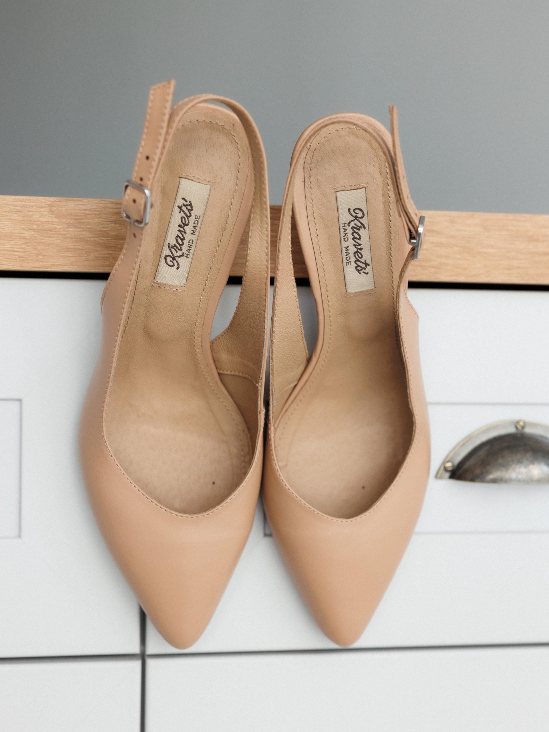Beige Leather Shoes Womens Low Heel Pumps Comfortable
