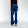 High Waisted Flare Jeans: Dark Blue Stretch Denim