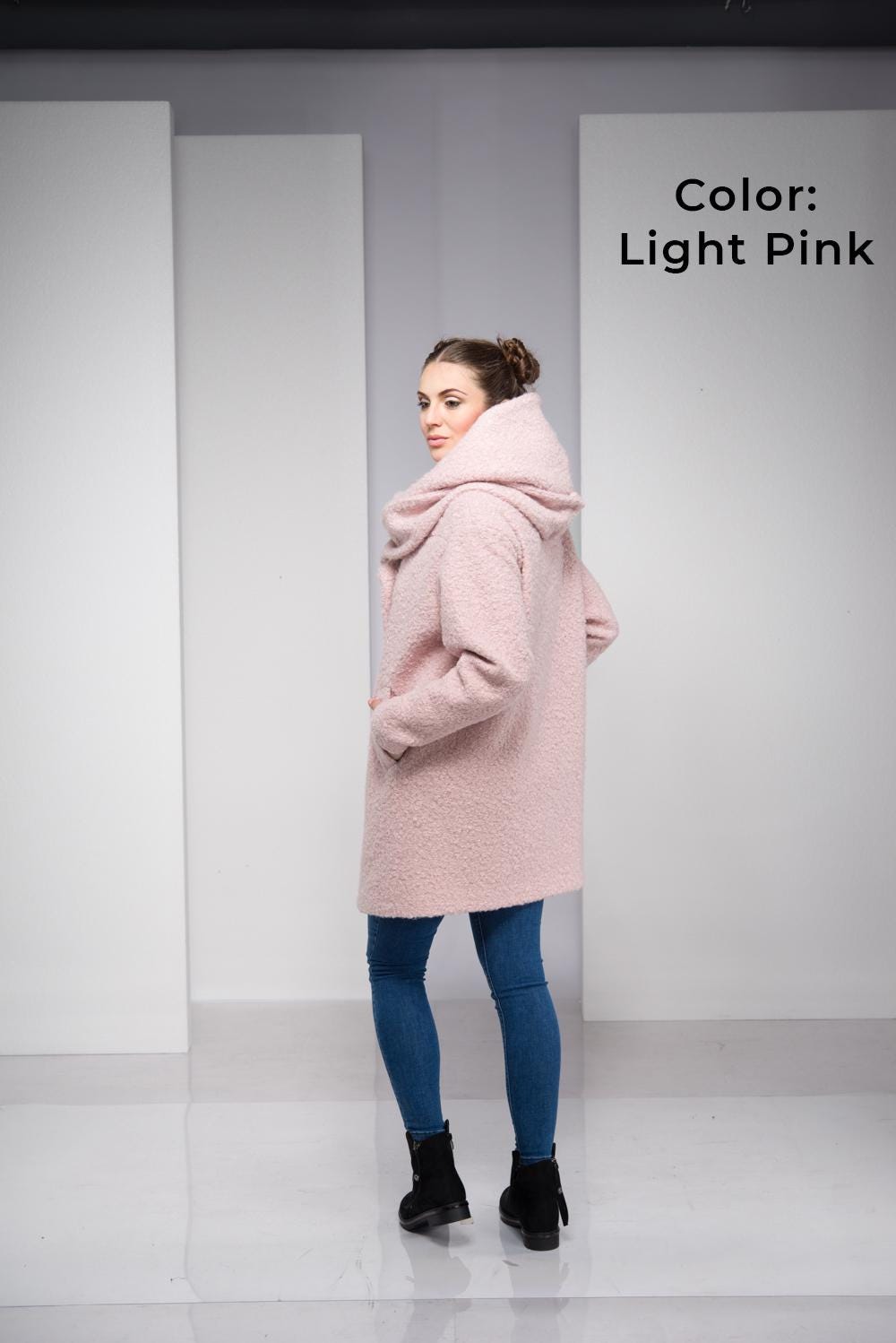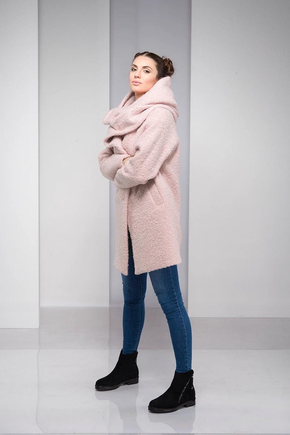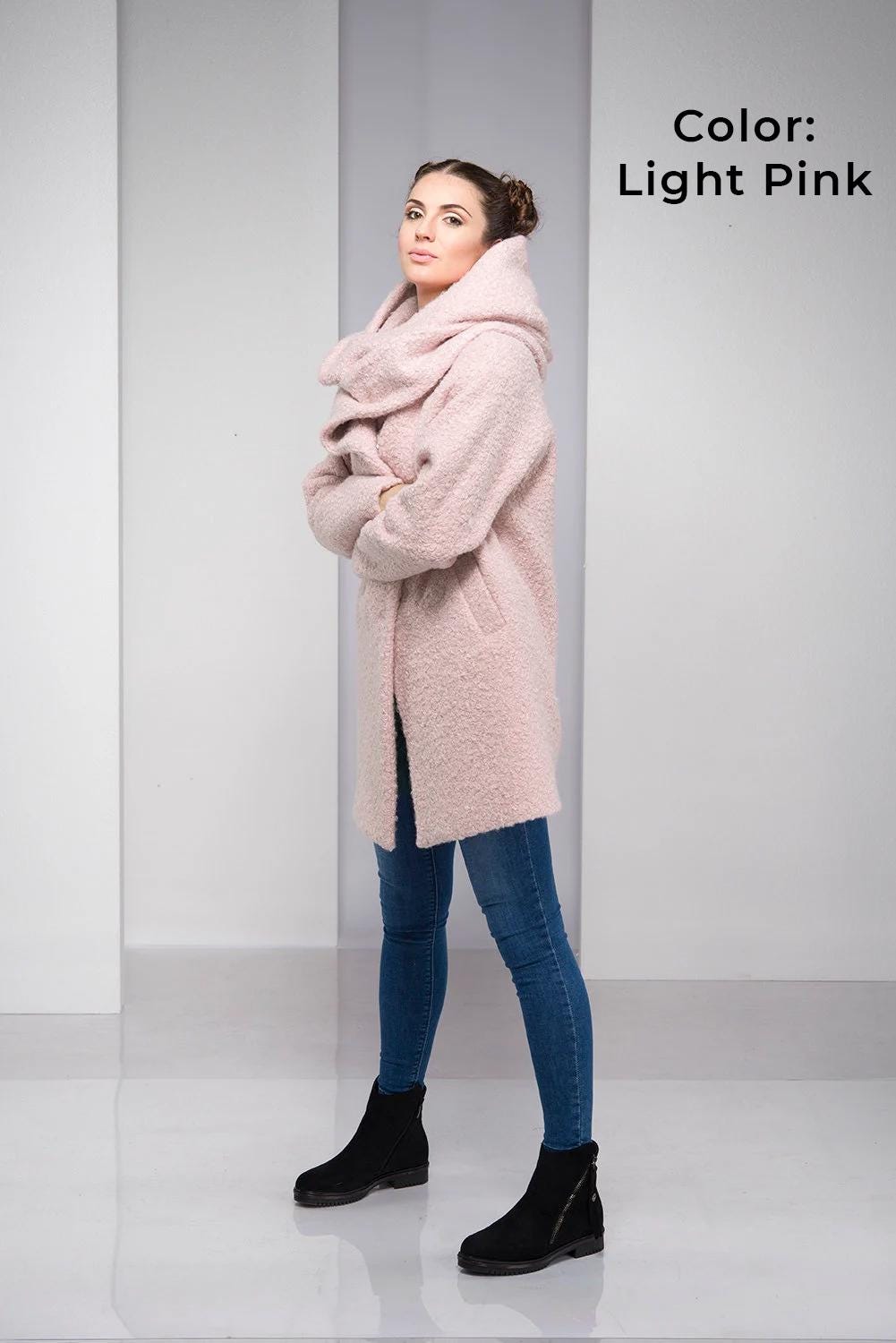 Light Pink Coat For Women Hooded Wool Cardigan