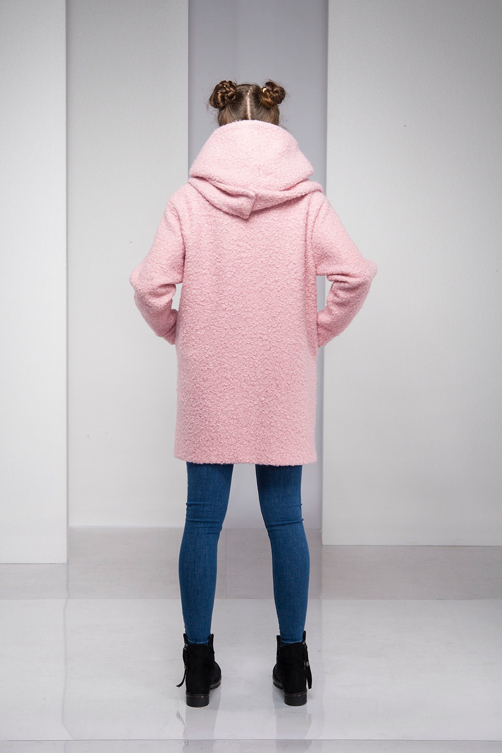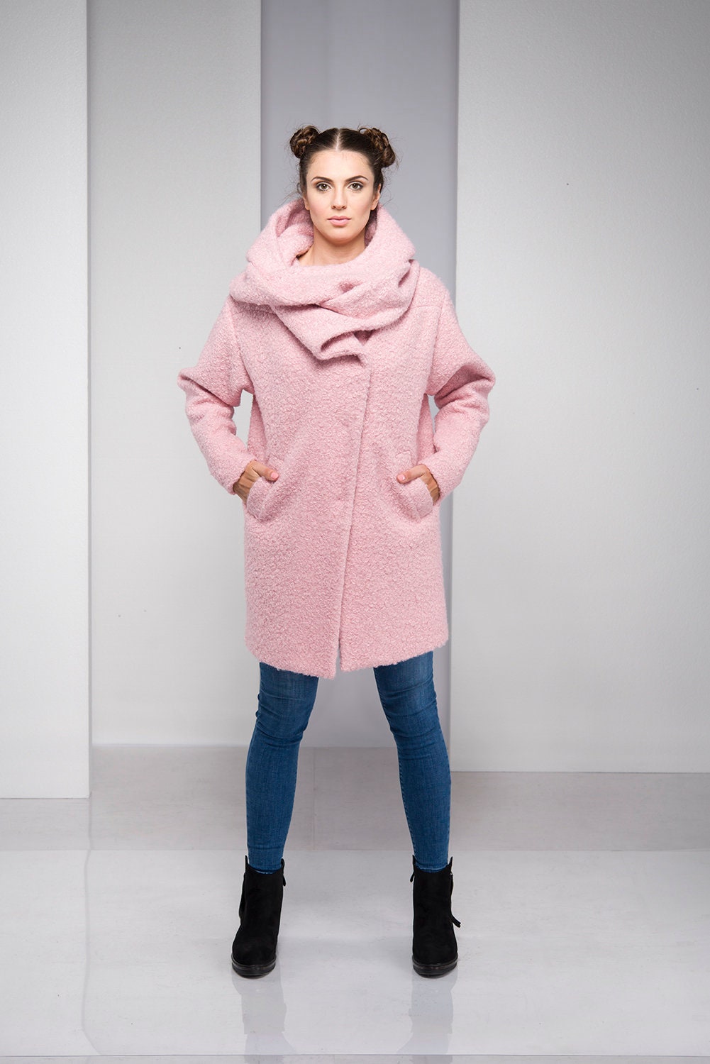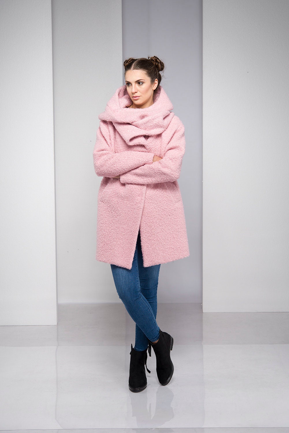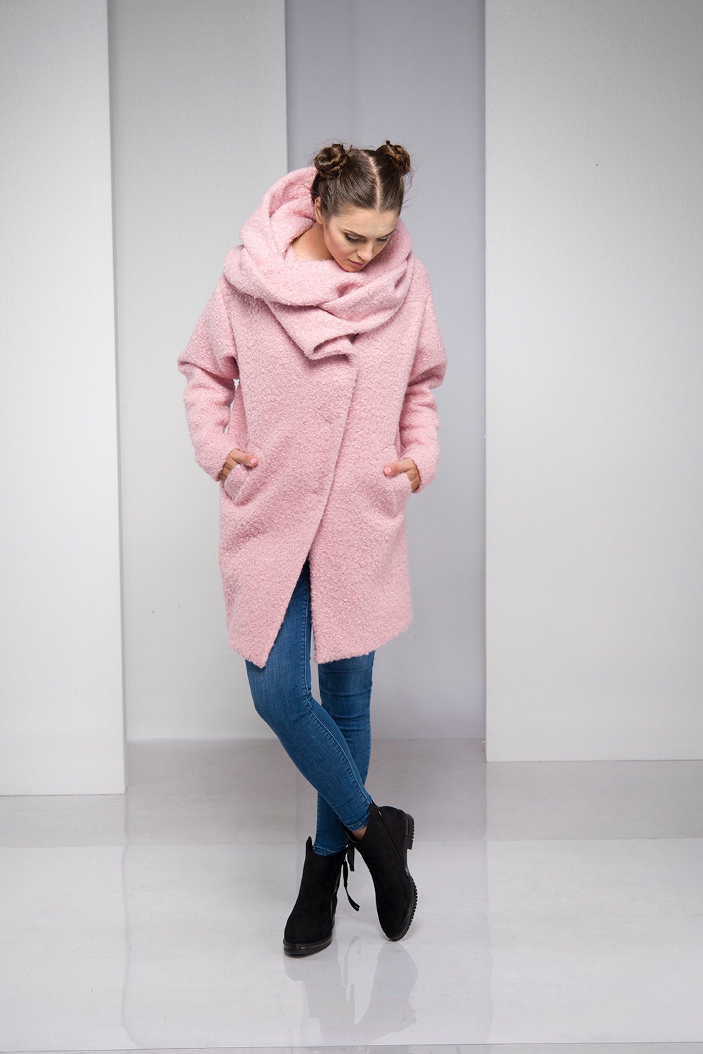 Light Pink Coat For Women Hooded Wool Cardigan