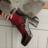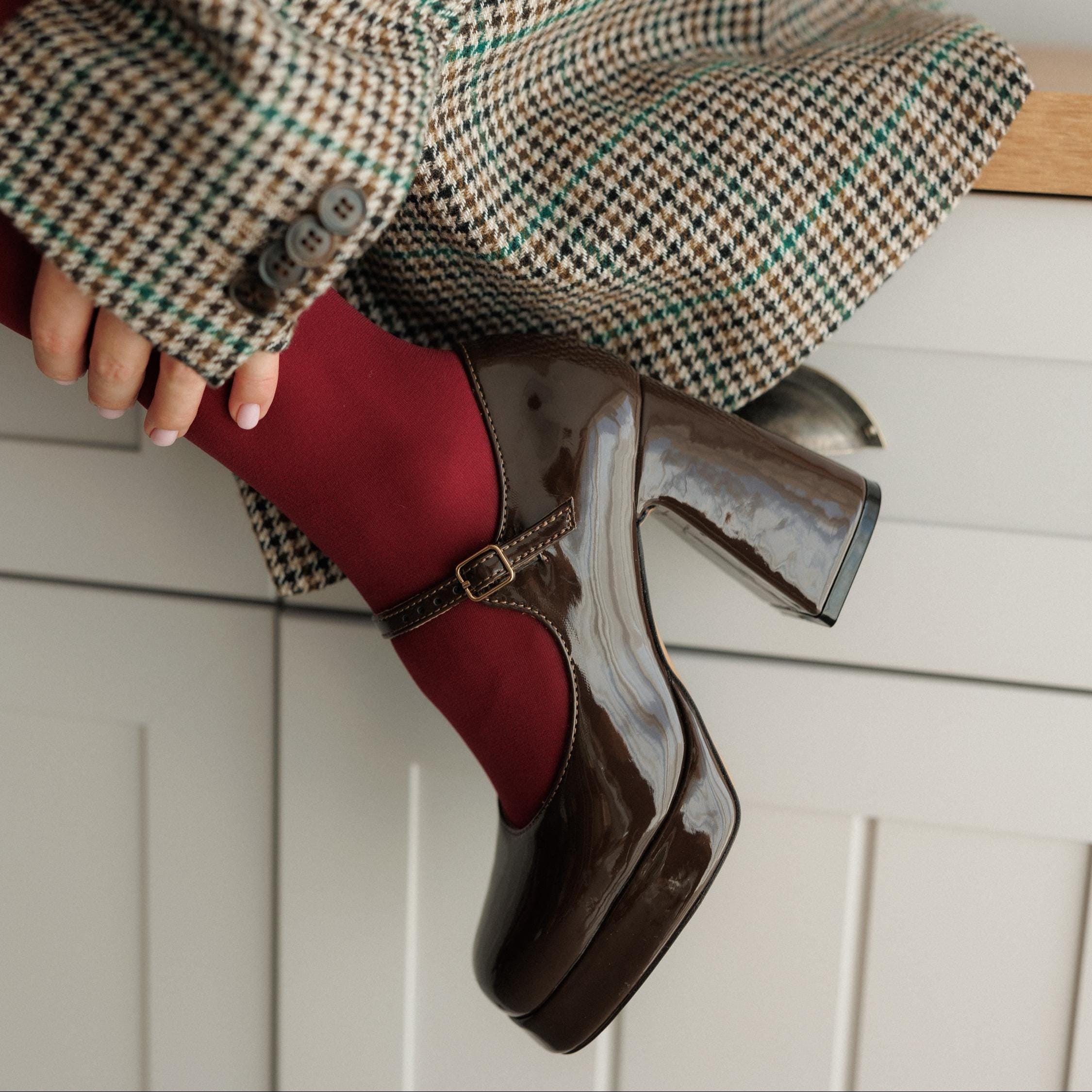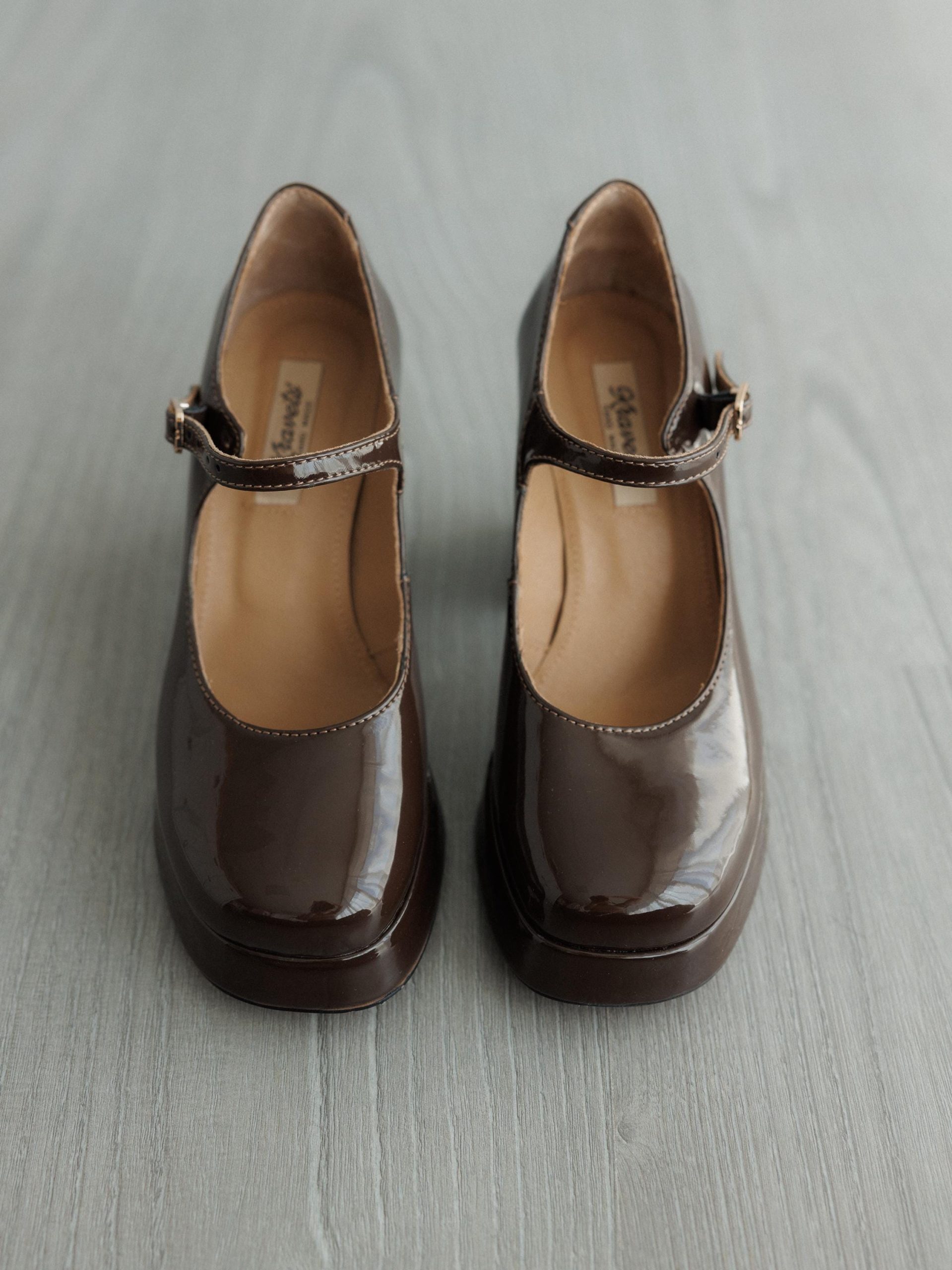 Crafted from chocolate-colored patent leather, these elegant platform high heels feature a 2 cm platform and an impressive 10 cm heel. They have a genuine leather upper and a leather lining for comfort.