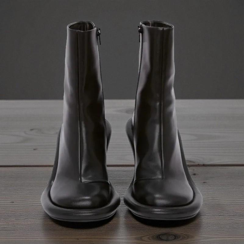 Thick Sole Round Toe Short Boots:side Zipper High