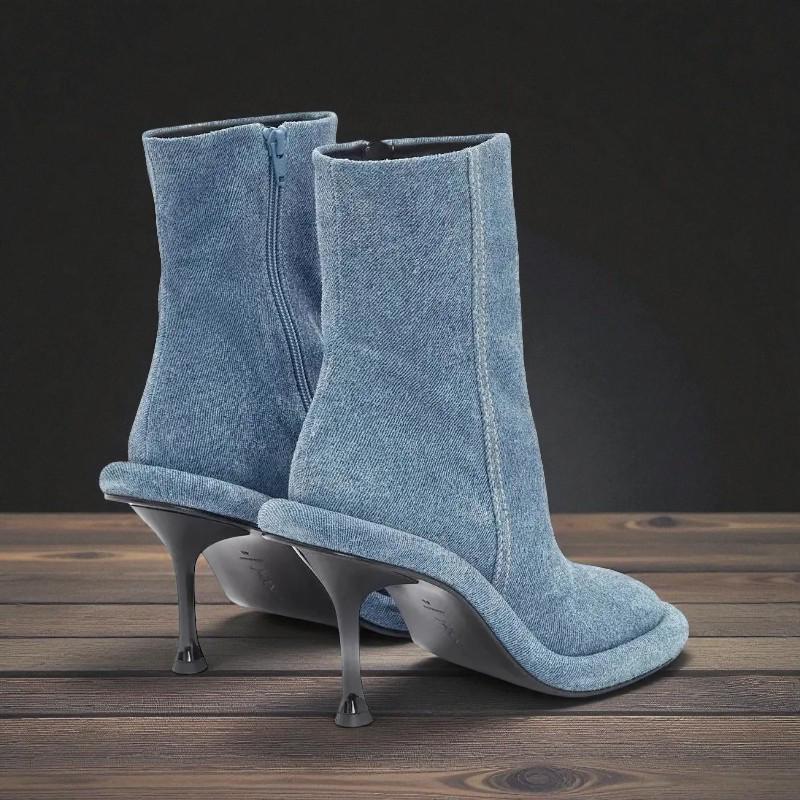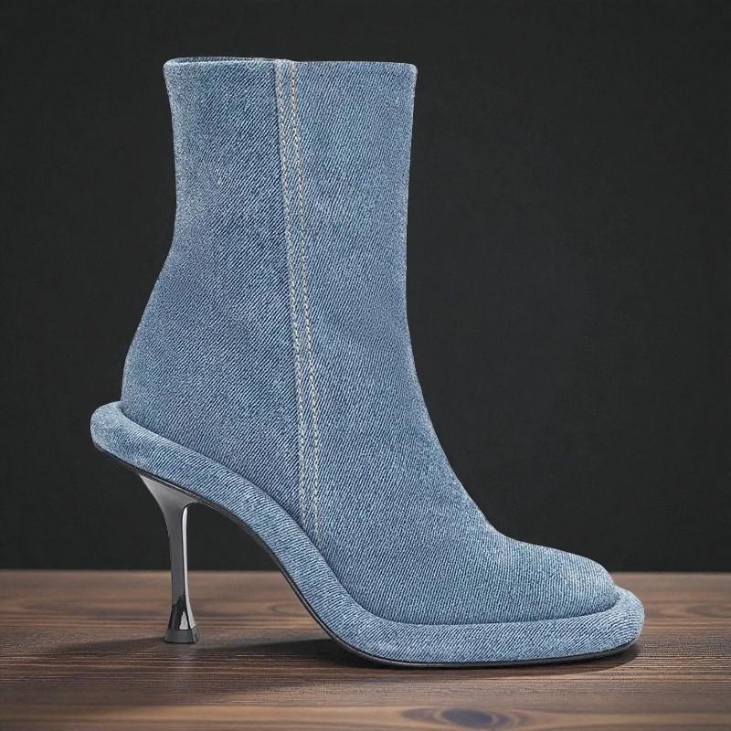 Step into bold confidence with these handmade women s ankle boots, designed with a super-high thin heel, sleek square toe, and stylish side zipper. Crafted from durable microfiber and fabric materials, these sexy modern boots offer a striking European-American look perfect for winter outfits, parties, and nights out. Comfortable, true-to-size fit with a sturdy rubber outsole ensures both stability and elegance in every step.