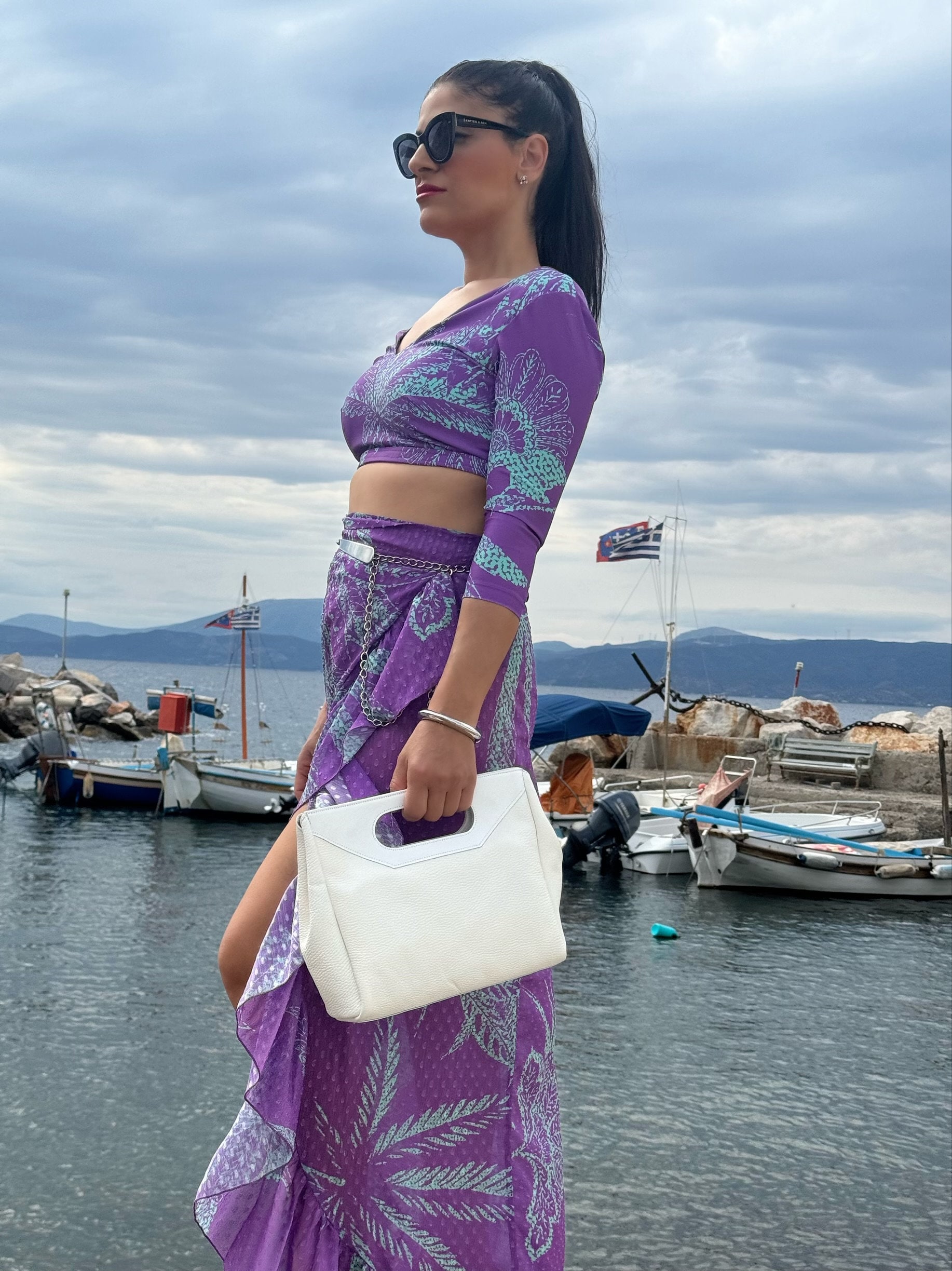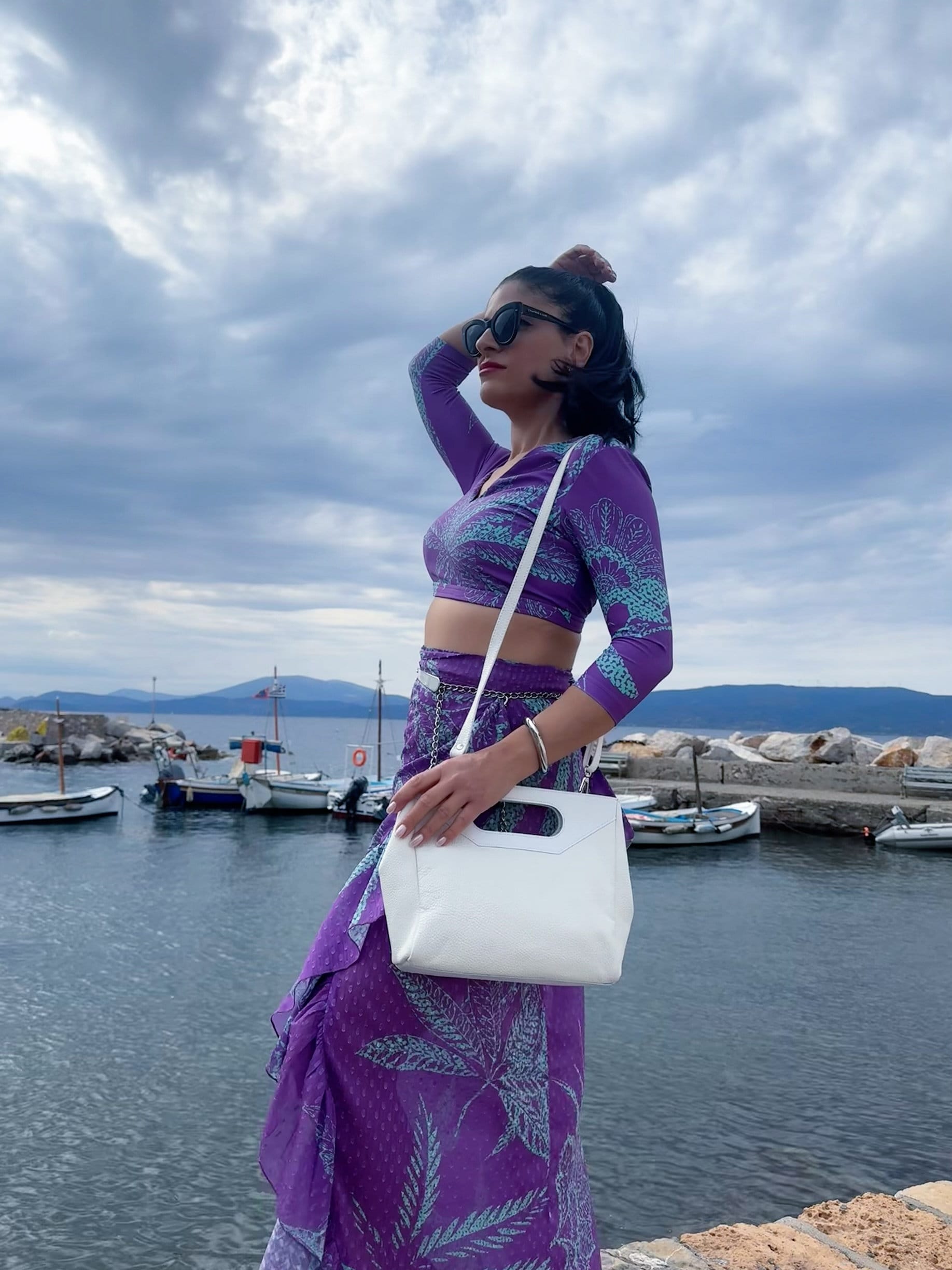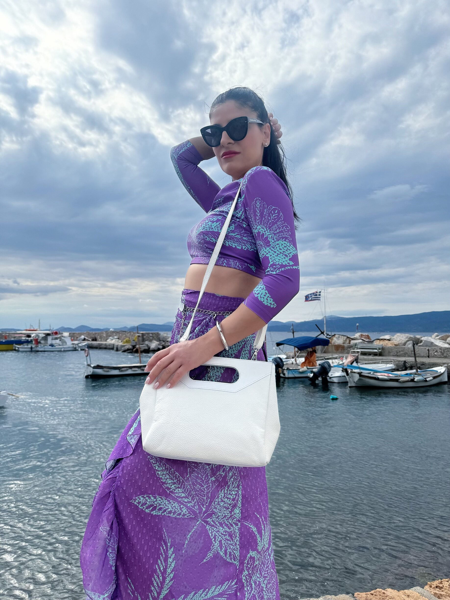 White Leather Handbag Top Handle Bag Shoulder Purse